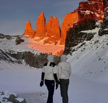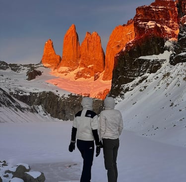 After a short, cold night, we set off at 4 a.m. towards the Torres to be there for sunrise. We were incredibly lucky with the weather. A tough final climb through the snow rewarded us with the most amazing view — a truly unforgettable morning to end this trek on a high note.