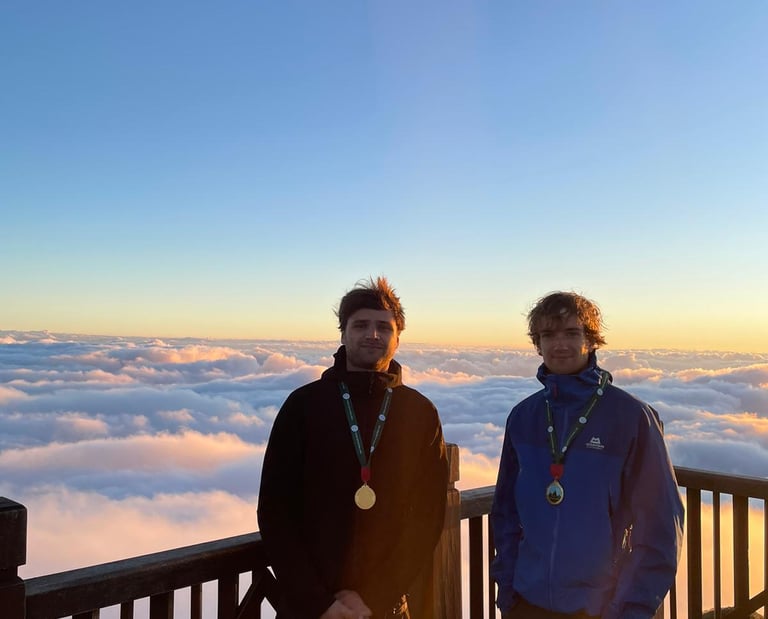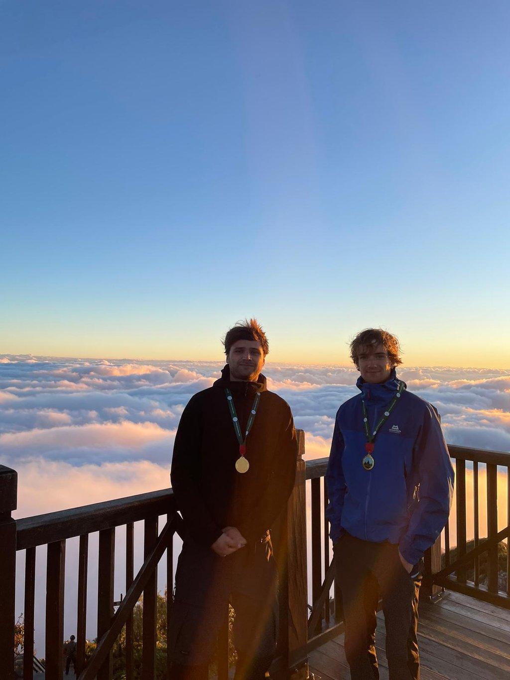 It was freezing, stood above the clouds, apprehensively waiting for the sun to rise above them. About half an hour after Jean and I summited, the other three joined us. They must have eventually woken up.