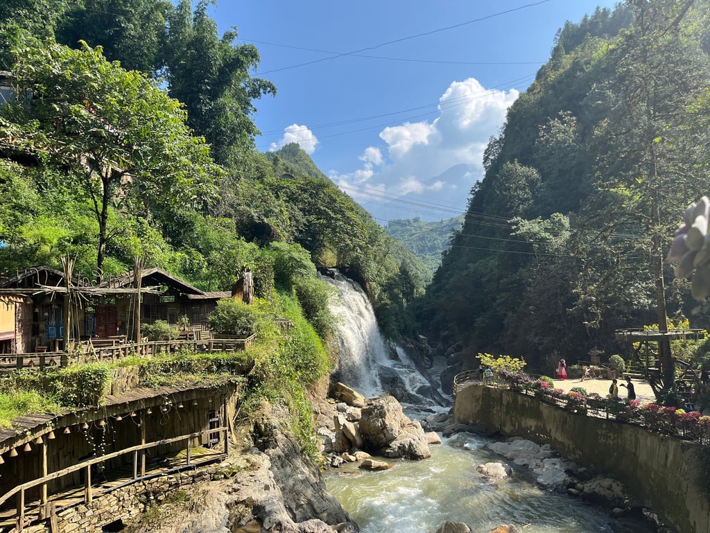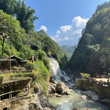 This afternoon I made my way down into the valley to the Cat Cat Village, which believe it or not, has nothing to do with cats. It's an incredibly scenic village at the base of the mountain, but it does feel slightly like a performance for tourists. There is a cheap entrance fee, with lots of market stalls on the way down into the village. Then once you get there, there is a gorgeous river with a waterfall, which runs through the middle.