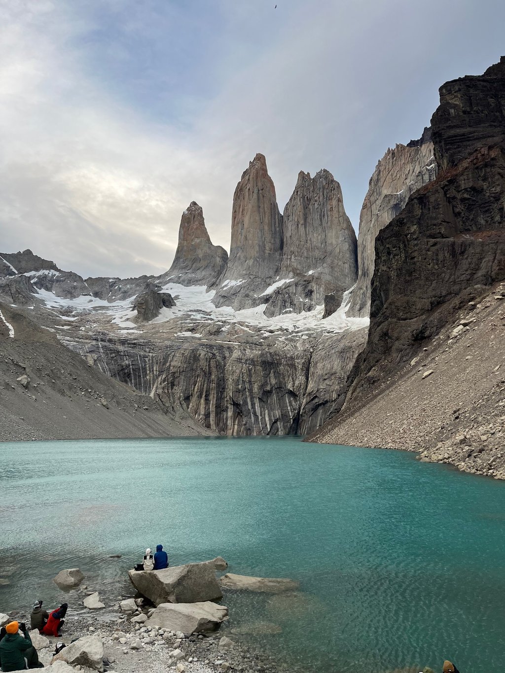 A nice lunch break by Rio Paine, equipped with pre made sandwiches and some knock off snickers bars. The water was a solid light blue colour. I have never seen rivers and lakes like those in Patagonia. The colours are out of this world.