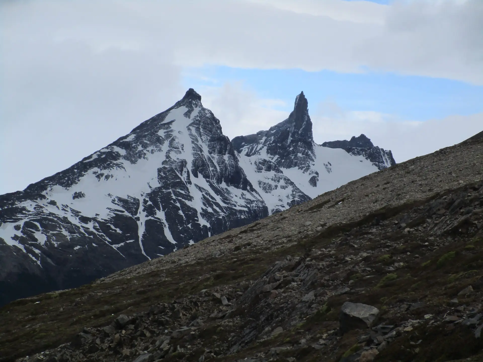 5:40am and we were off, ready to tackle the John Gardner Pass. Los Perros campsite is located at around 550m altitude, with the high point of todays hike at 1200m. A decent amount of climbing in around 6km, with the last section towards the pass crossing some quite deep snow. Our trekking poles came in pretty handy here.