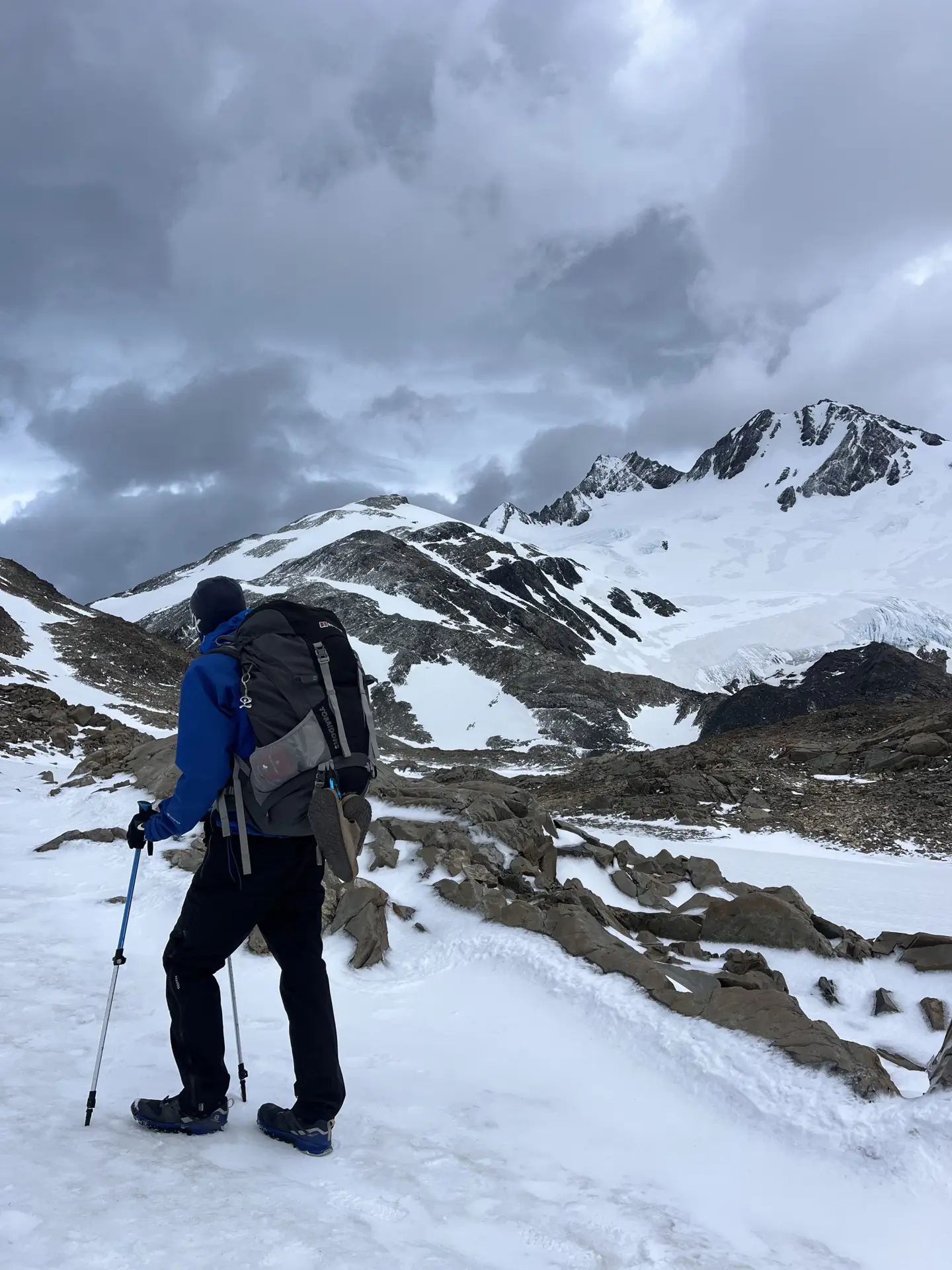 When we reached the viewpoint, it was only Rose and I there. The photo above, and any photo online doesn’t do justice to the pure scale of the glacier and surrounding mountains. They absolutely tower over you. It’s pretty exposed to the elements by the lake, with some strong winds and eventually snow later on. We took it in for a while before heading to the campsite.