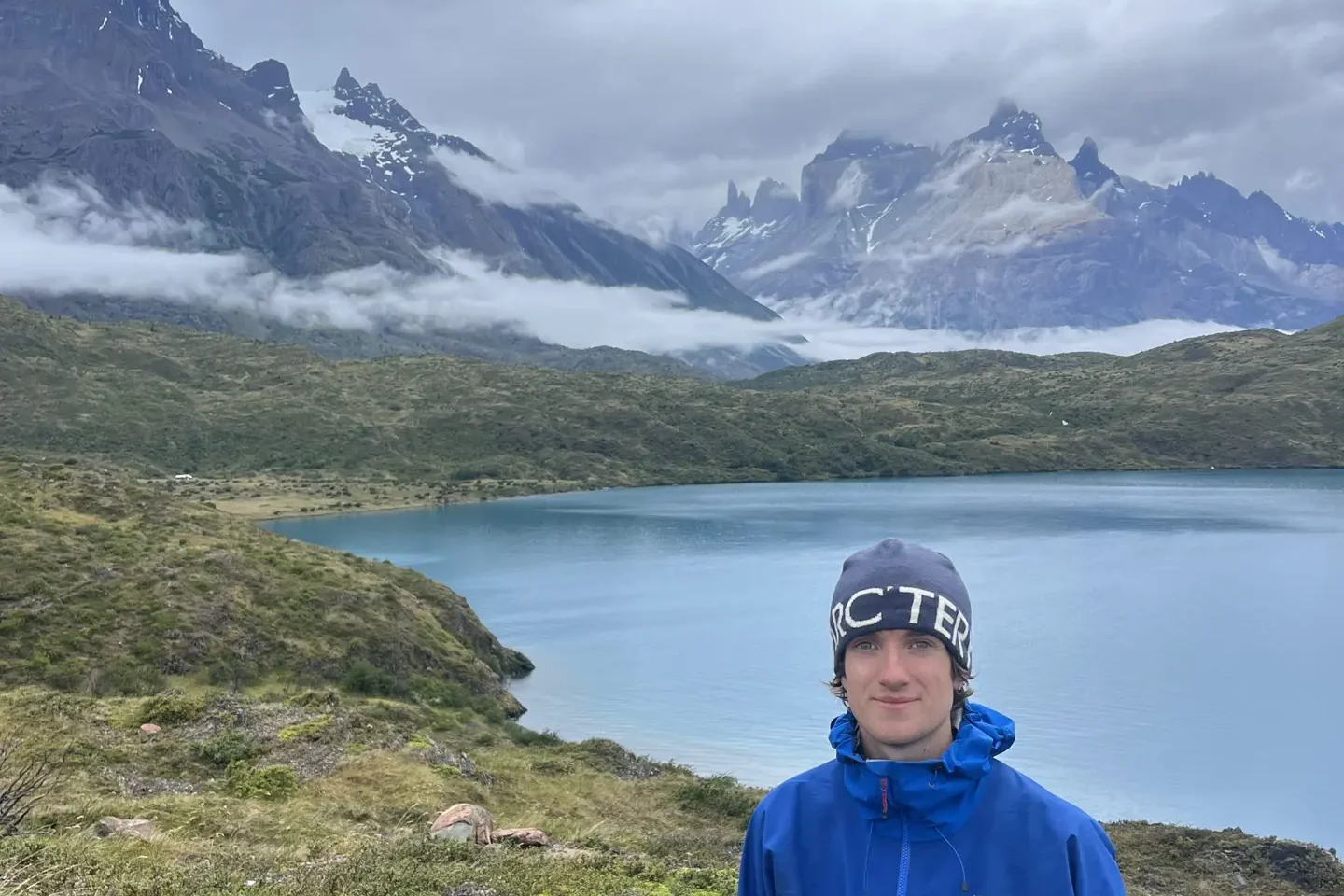 A nice lunch break by Rio Paine, equipped with pre made sandwiches and some knock off snickers bars. The water was a solid light blue colour. I have never seen rivers and lakes like those in Patagonia. The colours are out of this world.