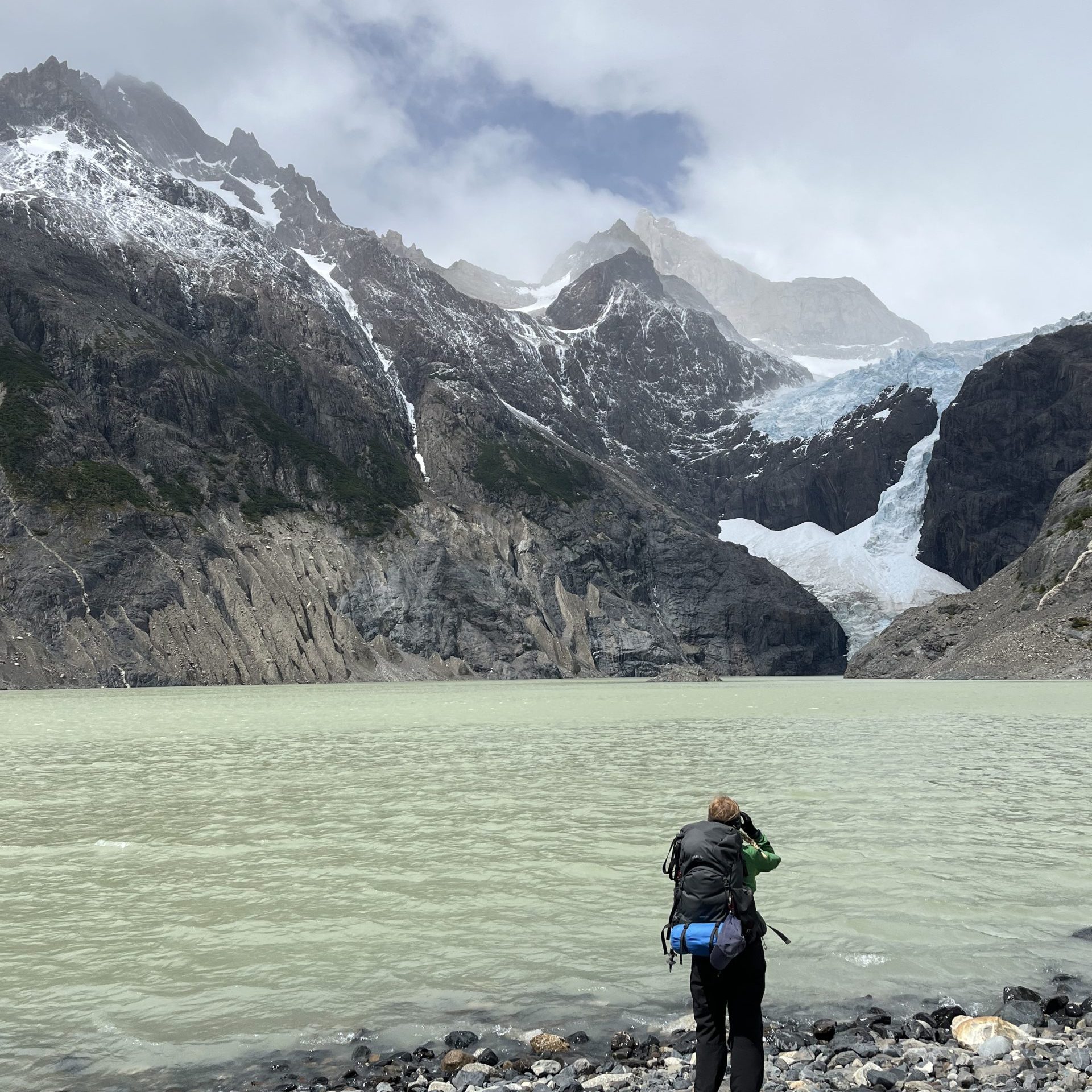 Today consisted of 16km and 800m of elevation gain, following the shores of Lake Nordeskjöld before heading up the Ascencio Valley to Chileno Camp. The turquoise of the lake is otherworldly with dramatic mountain landscapes surrounding.