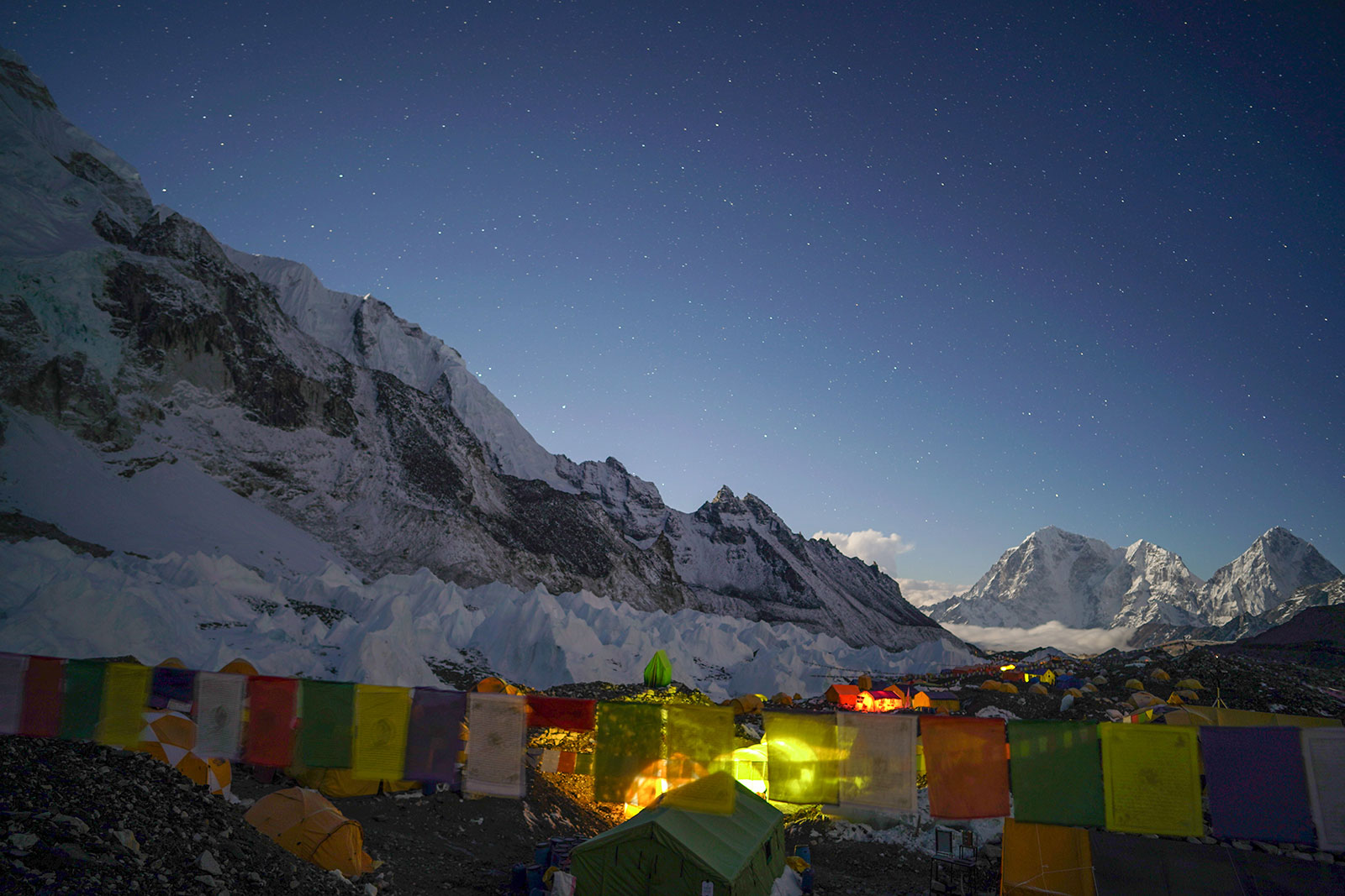 An early start takes you past the Khumbu Glacier toward Everest Base Camp. The trail winds over rocky moraines and frozen streams, offering ever-changing views of Pumori, Nuptse, and the Khumbu Icefall. Arriving at Base Camp, you’ll witness climbers’ tents dotting the glacier, the icefall groaning and shifting in the shadow of Everest. After soaking in the scale and drama of the world’s tallest mountain, the trek descends back to Gorakshep for an overnight stay, with stunning views of the surrounding peaks as the sun sets. Overnight in Gorakshep.