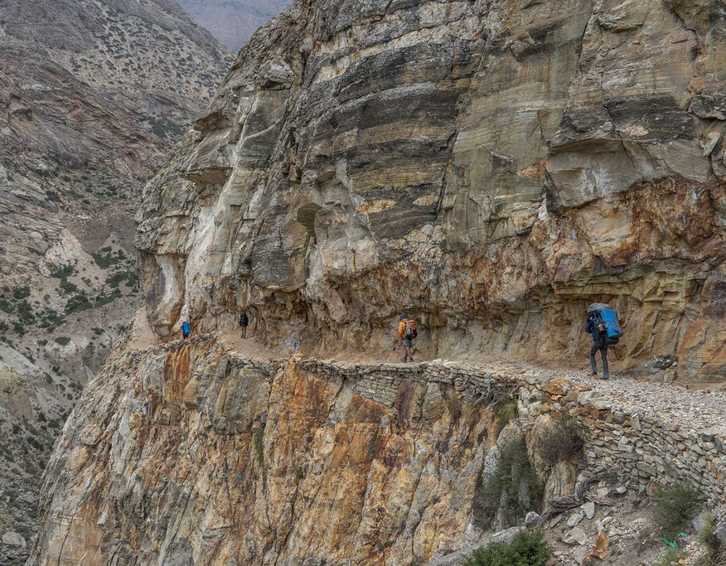 Leave the main Annapurna Circuit trail and enter the hidden Nar and Phu valleys. The path follows a narrow river gorge through dense pine and fir forests, crossing several suspension bridges and passing cascading waterfalls. The landscape becomes increasingly rugged as you ascend to Meta.