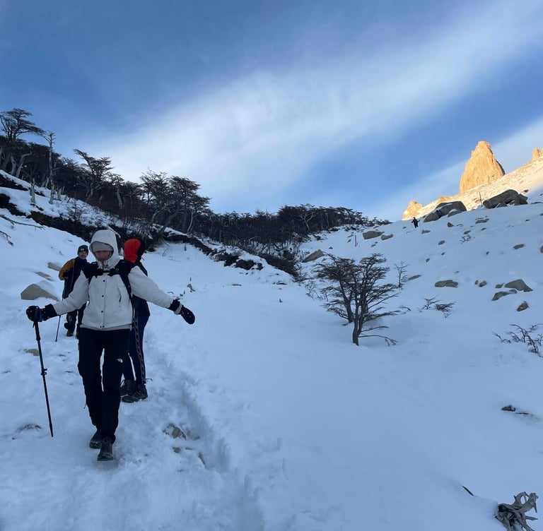 After a short, cold night, we set off at 4 a.m. towards the Torres to be there for sunrise. We were incredibly lucky with the weather. A tough final climb through the snow rewarded us with the most amazing view — a truly unforgettable morning to end this trek on a high note.