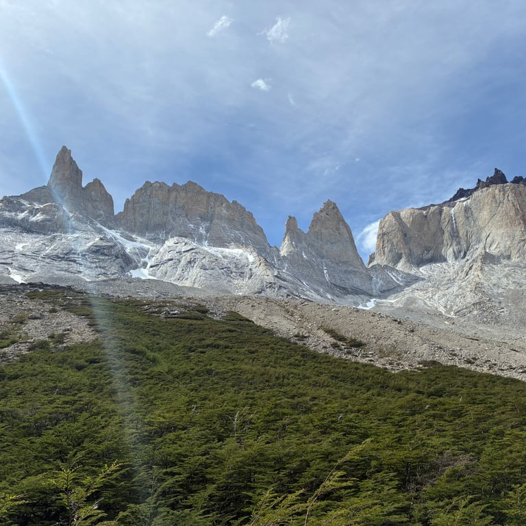 and doing this trek in the Torres del Paine region was nothing short of breathtaking, everywhere you looked there was just the most beautiful views of mountains, glaciers, turquoise lagoons and more. The refugios were mainly based within the forests which were stunning. We put up the tent under the trees and went to the kitchens with our stove to get cooking with whatever we had rationed for the day.